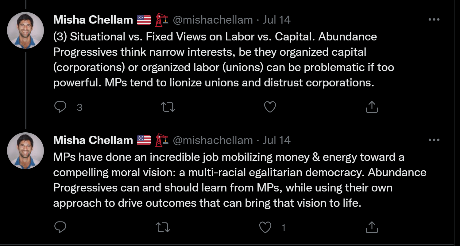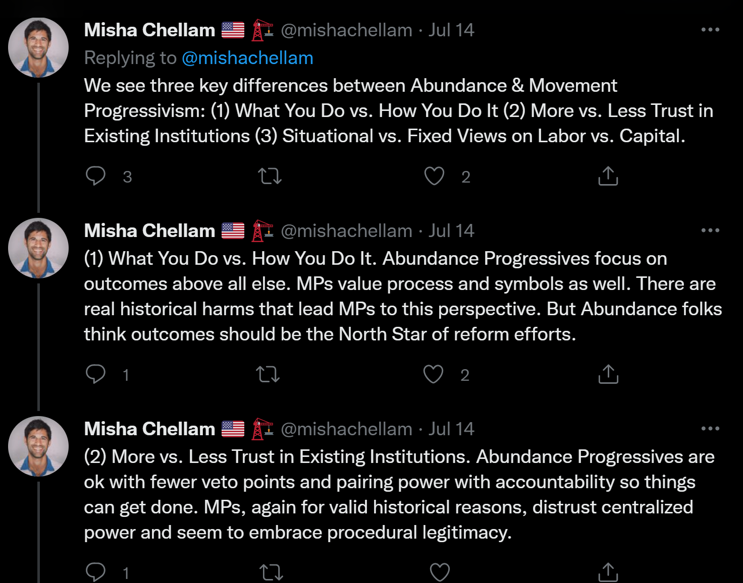 [I will add that that I don’t love the implied competition between movement and abundance progressive wings in the linked article. I think they are both great I hope they partner to seize the means of production and lead us into a glorious low-carbon future.]